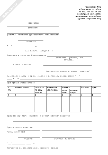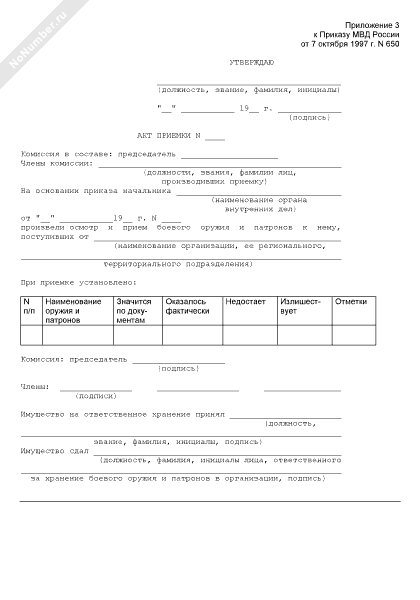 Акт приемки на баланс МВД России боевого оружия и патронов к нему