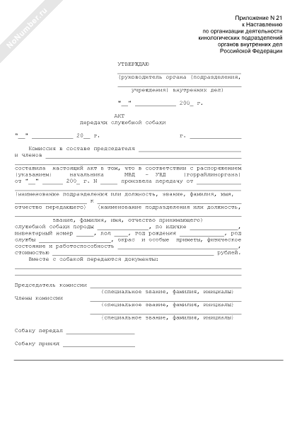 Акт выбраковки служебной собаки (рекомендуемый образец заполнения)