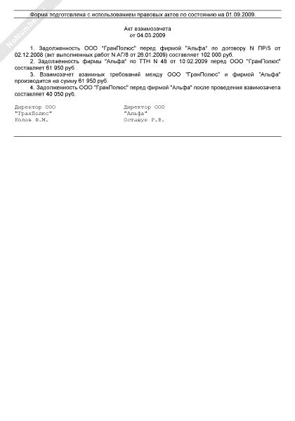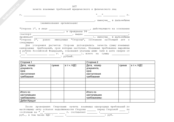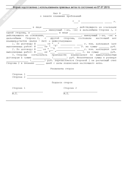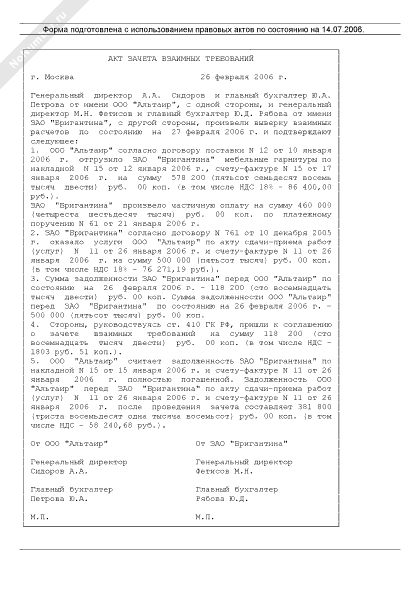 Акт зачета взаимных требований трех юридических лиц (рекомендуемый образец заполнения)