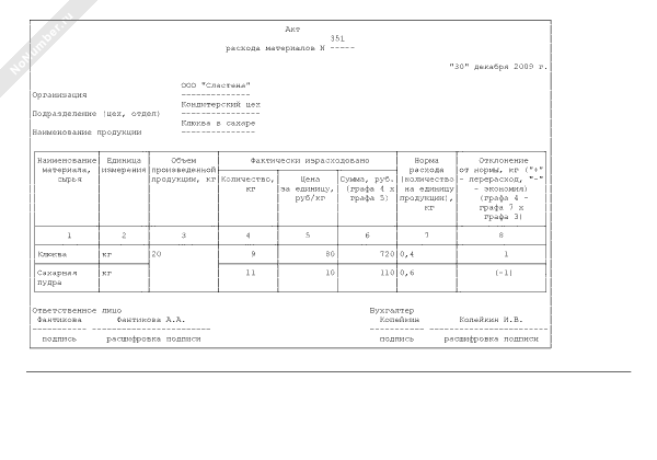 Акт о приемке материалов (типовая межотраслевая форма № М-7)