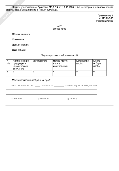 Типовой акт отбора проб для выявления и идентификации наноматериалов в водоемах (рекомендуемый образец заполнения)