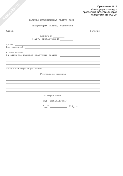 Анализ к акту экспертизы в лаборатории Торгово-промышленной палаты СССР