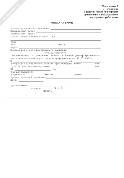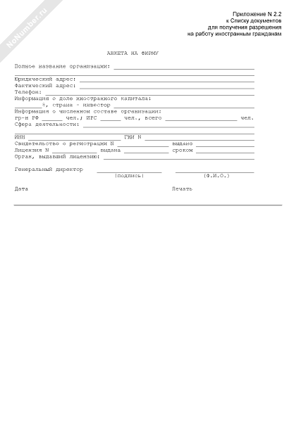 - 102Анкета на фирму (для рассмотрения вопроса о целесообразности привлечения иностранных работников)