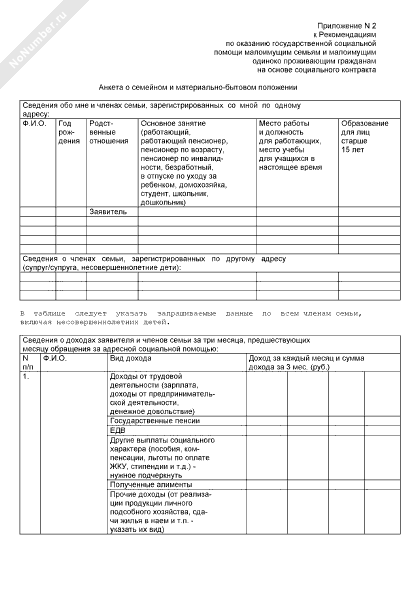 - 104Анкета о семейном и материально-бытовом положении заявителя на оказание государственной социальной помощи на основе социального контракта