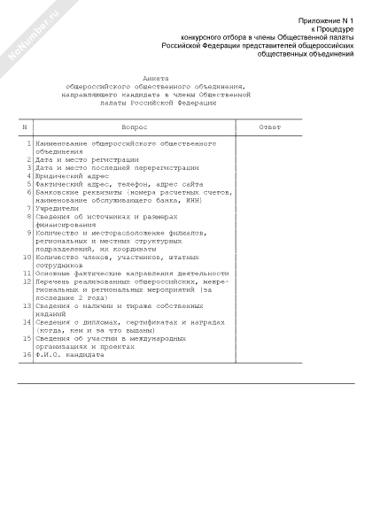- 108Анкета общероссийского общественного объединения, направляющего кандидата в члены Общественной палаты Российской Федерации