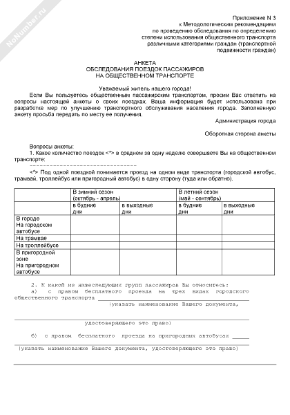 - 105Анкета обследования поездок пассажиров на общественном транспорте
