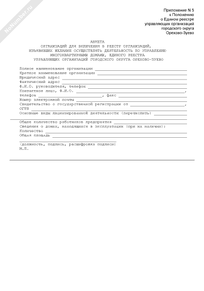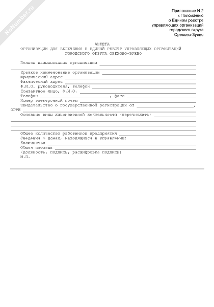 - 119Анкета организаций для включения в реестр организаций, изъявивших желание осуществлять деятельность по управлению многоквартирными домами, Единого реестра управляющих организаций городского округа Орехово-Зуево