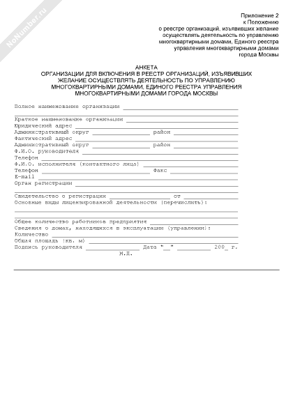 - 112Анкета организации для включения в реестр организаций, изъявивших желание осуществлять деятельность по управлению многоквартирными домами, единого реестра управления многоквартирными домами города Москвы