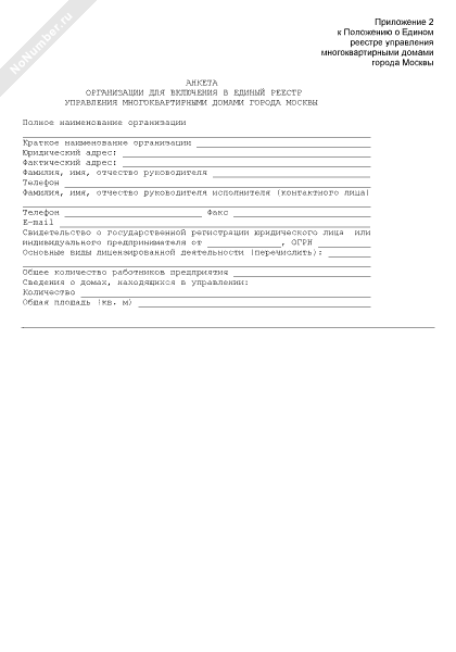 - 111Анкета организации для включения в единый реестр управления многоквартирными домами города Москвы