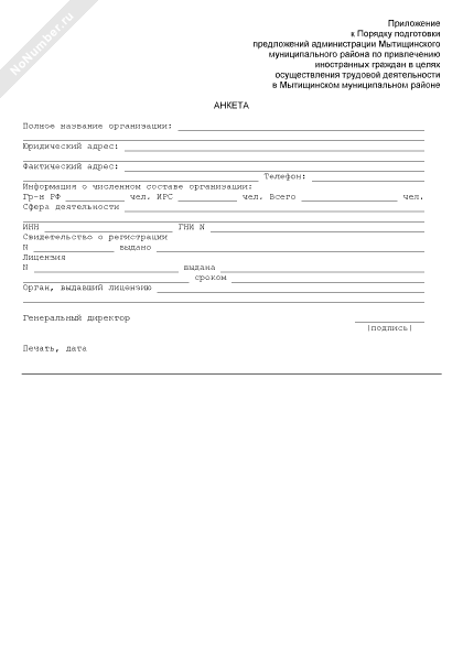 - 115Анкета организации Мытищинского района Московской области при получении согласования на привлечение иностранных работников из стран с визовым режимом