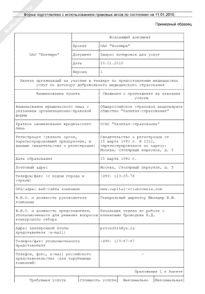 - 120Анкета организаций на участие в тендере по предоставлению медицинских услуг по договору добровольного медицинского страхования