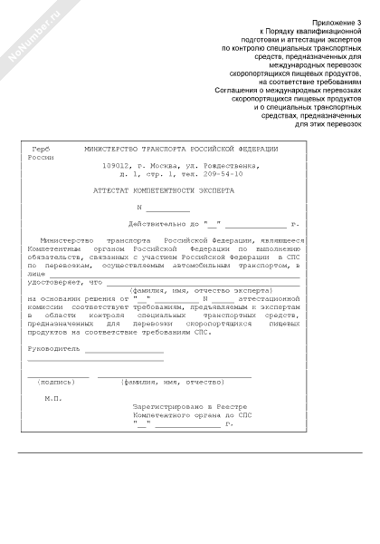 - 30Аттестат компетентности эксперта в области контроля специальных транспортных средств, предназначенных для перевозки скоропортящихся пищевых продуктов, на соответствие требованиям соглашения о международных перевозках скоропортящихся пищевых продуктов и о специальных транспортных средствах, предназначенных для этих перевозок