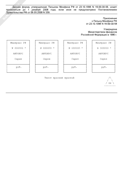 Билет для проезда в автобусах внегородского сообщения (рекомендуемый образец заполнения)