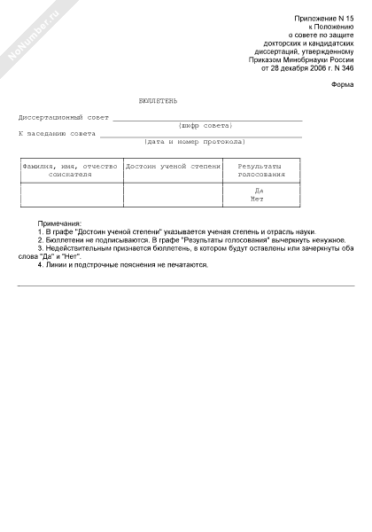 Бюллетень для тайного голосования членов диссертационного совета, присутствующих на заседании (рекомендуемый образец заполнения)
