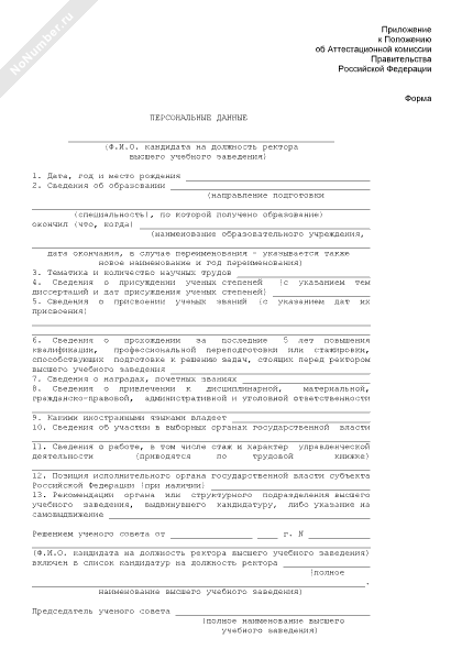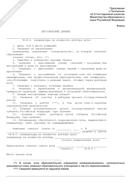 - 204Персональные данные кандидата на должность ректора высшего учебного заведения