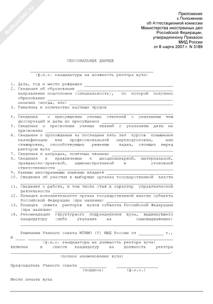 - 206Персональные данные кандидата на должность ректора государственного образовательного учреждения высшего профессионального образования (вуза), находящимся в ведении Министерства иностранных дел Российской Федерации