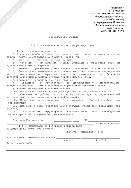 - 207Персональные данные кандидата на должность ректора высшего учебного заведения, находящегося в ведении Федерального агентства по рыболовству