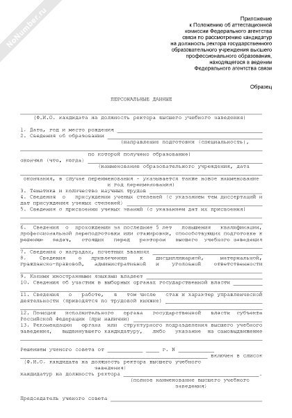 - 208Персональные данные кандидата на должность ректора высшего учебного заведения, находящегося в ведении Федерального агентства связи