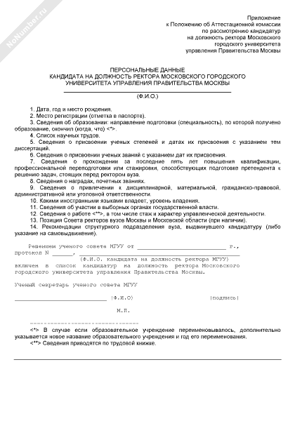 - 203Персональные данные кандидата на должность ректора Московского городского университета управления Правительства Москвы