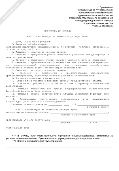 - 209Персональные данные кандидатуры на должность ректора высшего учебного заведения, подведомственного Министерству спорта, туризма и молодежной политики Российской Федерации