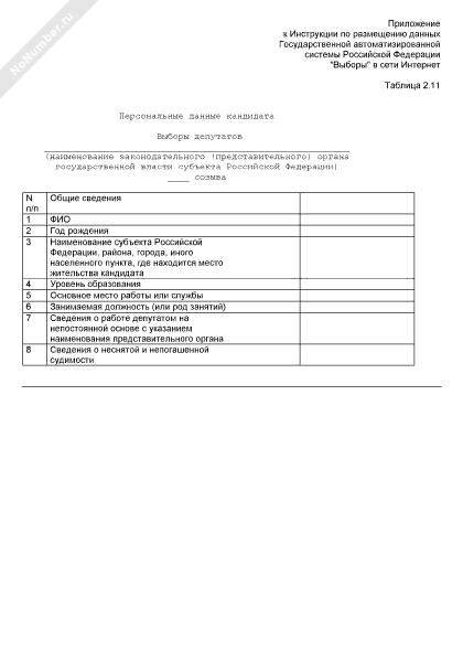 - 32Данные для размещения на сайтах избирательных комиссий субъектов Российской Федерации. Персональные данные кандидата в депутаты законодательного (представительного) органа государственной власти субъекта Российской Федерации (таблица 2.11)