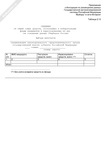 - 34Данные для размещения на сайтах избирательных комиссий субъектов Российской Федерации. Сведения об общей сумме средств, поступивших в избирательные фонды кандидатов в депутаты законодательного (представительного) органа государственной власти субъекта Российской Федерации и израсходованных из них (на основании данных Сбербанка России) (таблица 2.13)