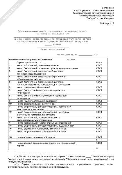 - 36Данные для размещения на сайтах избирательных комиссий субъектов Российской Федерации. Предварительные итоги голосования по единому округу на выборах депутатов законодательного (представительного) органа государственной власти субъекта Российской Федерации (таблица 2.15)