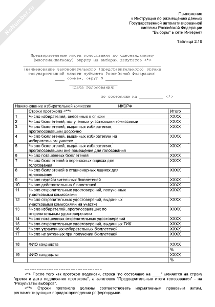 - 37Данные для размещения на сайтах избирательных комиссий субъектов Российской Федерации. Предварительные итоги голосования по одномандатному (многомандатному) округу на выборах депутатов законодательного (представительного) органа государственной власти субъекта Российской Федерации (таблица 2.16)