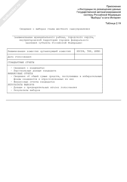 - 40Данные для размещения на сайтах избирательных комиссий субъектов Российской Федерации. Сведения о выборах главы местного самоуправления муниципального района, городского округа, внутригородской территории городов федерального значения субъекта Российской Федерации (таблица 2.19)