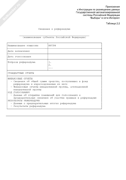 - 23Данные для размещения на сайтах избирательных комиссий субъектов Российской Федерации. Сведения о референдуме субъекта Российской Федерации (таблица 2.2)