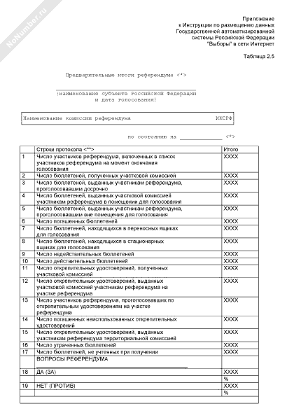 - 26Данные для размещения на сайтах избирательных комиссий субъектов Российской Федерации. Предварительные итоги референдума субъекта Российской Федерации (таблица 2.5)