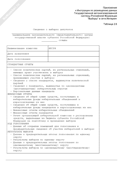 - 27Данные для размещения на сайтах избирательных комиссий субъектов Российской Федерации. Сведения о выборах в депутаты законодательного (представительного) органа государственной власти субъекта Российской Федерации (таблица 2.6)