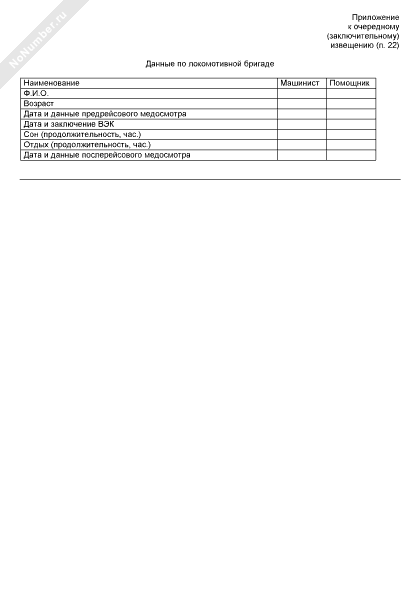 - 135Данные по локомотивной бригаде (приложение к очередному (заключительному) извещению о чрезвычайной ситуации на железной дороге — филиале ОАО «РЖД»)
