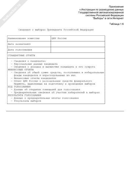 Данные для размещения на Интернет-портале Центризбиркома РФ. Сведения о выборах Президента Российской Федерации (таблица 1.6)