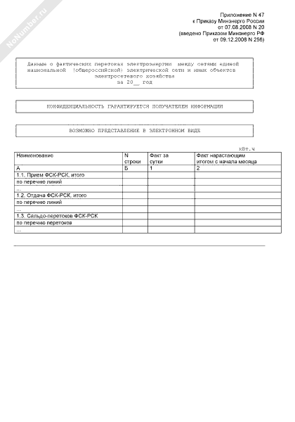 - Источник– Приказ Минэнерго РФ от 07.08.2008 № 20 (редакция от 09.12.2008 № 256)