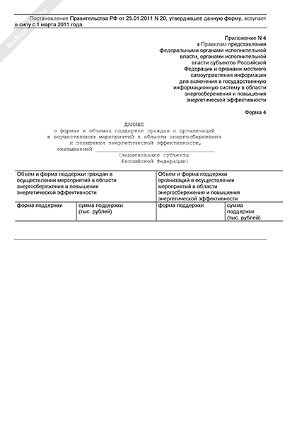 Данные о формах и объемах поддержки граждан и организаций в осуществлении мероприятий в области энергосбережения и повышения энергетической эффективности (форма № 4)
