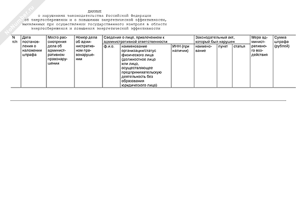 Данные о нарушениях законодательства Российской Федерации об энергосбережении и о повышении энергетической эффективности, выявленных при осуществлении государственного контроля в области энергосбережения и повышения энергетической эффективности. Форма № 3-2 (рекомендуемый образец заполнения)