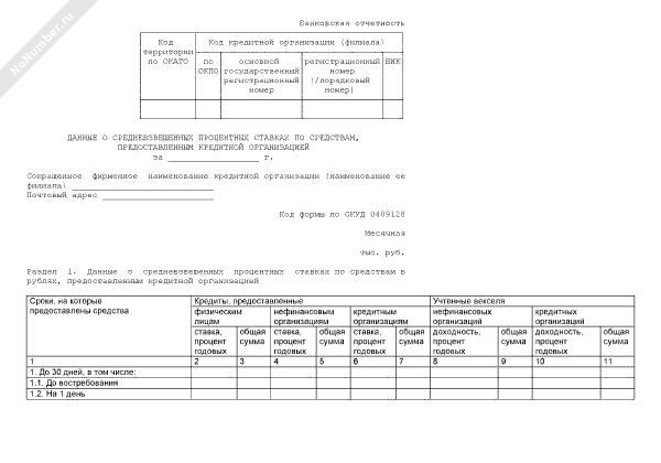 Данные о средневзвешенных процентных ставках по средствам, предоставленным кредитной организацией (рекомендуемый образец заполнения)