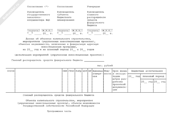 Данные об объектах капитального строительства, мероприятиях (укрупненных инвестиционных проектах), объектах недвижимости, включенных в федеральную адресную инвестиционную программу, на год и на плановый период (рекомендуемая форма)