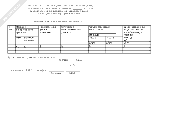 Данные об объемах отгрузки лекарственных средств, поступавших в обращение до даты представления их предельной отпускной цены на государственную регистрацию (рекомендуемый образец заполнения)