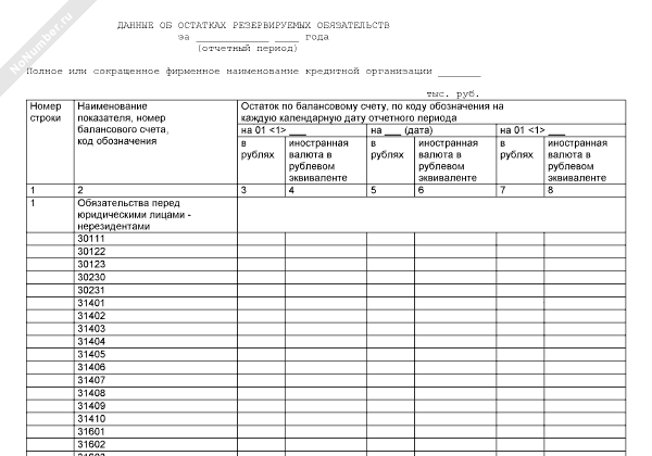 Данные об остатках резервируемых обязательств кредитной организации (рекомендуемый образец заполнения)