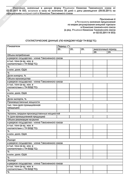 Статистические данные (по каждому коду ТН ВЭД ТС)