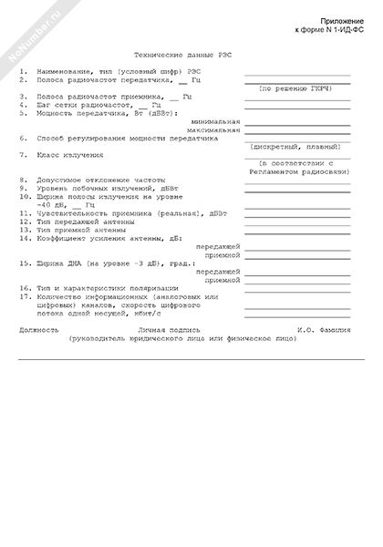 Технические данные РЭС (приложение к форме N 1-ИД-ФС)