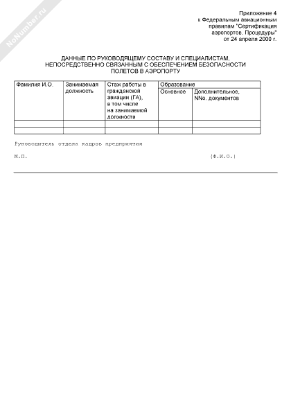 Данные по руководящему составу и специалистам, непосредственно связанным с обеспечением безопасности полетов в аэропорту (рекомендуемый образец заполнения)