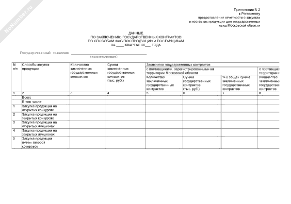 Данные по заключению государственных контрактов по способам закупок продукции и поставщикам продукции для государственных нужд Московской области (рекомендуемый образец заполнения)