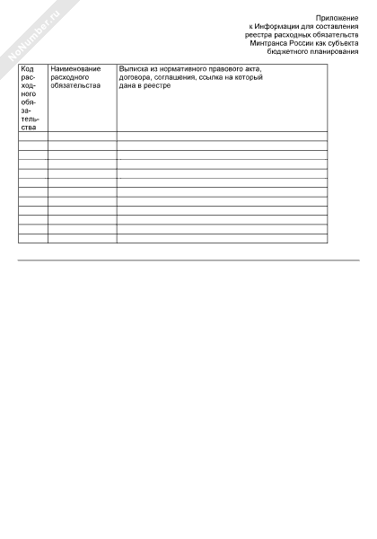 Дополнительные данные для составления реестра расходных обязательств Минтранса России как субъекта бюджетного планирования (рекомендуемый образец заполнения)