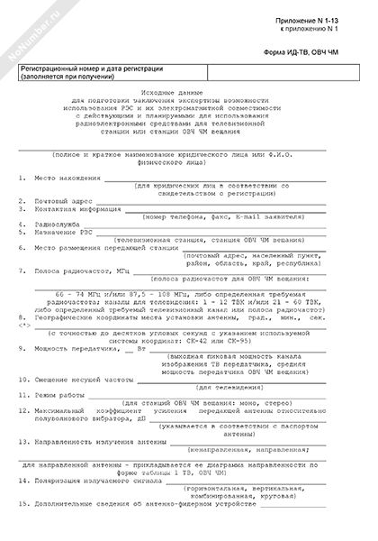- Номер типовой формы ИД-ТВ, ОВЧ ЧМ