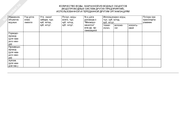 Исходные данные для разработки проектов организации санитарно-защитных зон. Количество воды, забранной из водных объектов (водопроводных систем других предприятий), использованной и переданной другим организациям (таблица 2)