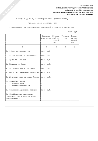 Исходные данные, характеризующие деятельность предприятия, учитываемые при определении оценочной стоимости имущества (рекомендуемый образец заполнения)