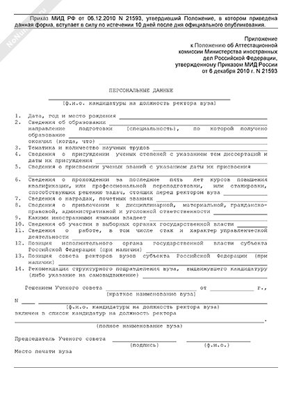 - Источник– Приказ МИД РФ от 06.12.2010 № 21593